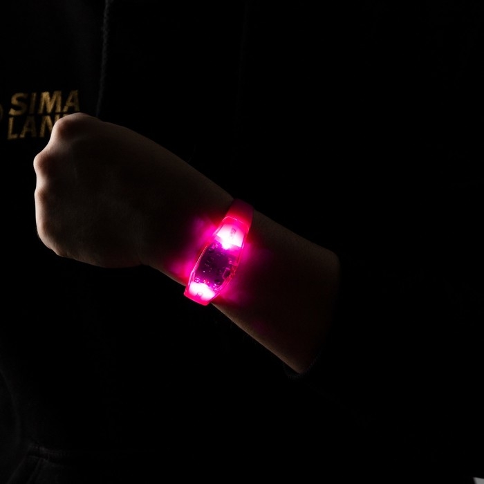 Светодиодный браслет розовый, батарейки CR2016х2, свечение розовое