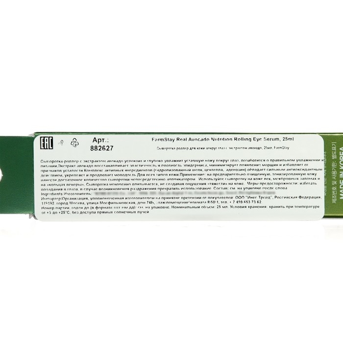 Сыворотка-роллер FarmStay для кожи вокруг глаз с экстрактом авокадо в объеме 25 мл - это продукт, специально разработанный для ухода за нежной кожей вокруг глаз, обогащенный экстрактом авокадо.