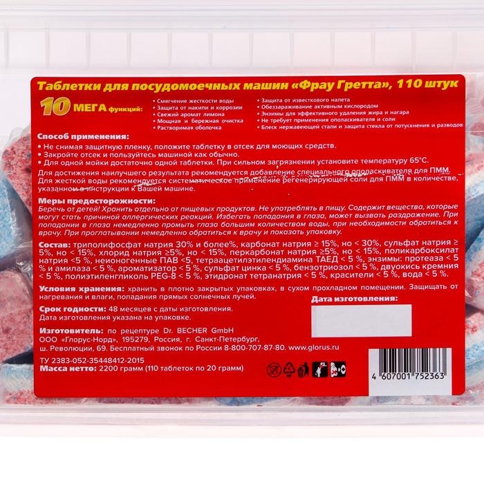 Таблетки для посудомоечных машин Frau Gretta в водорастворимой оболочке 110 шт