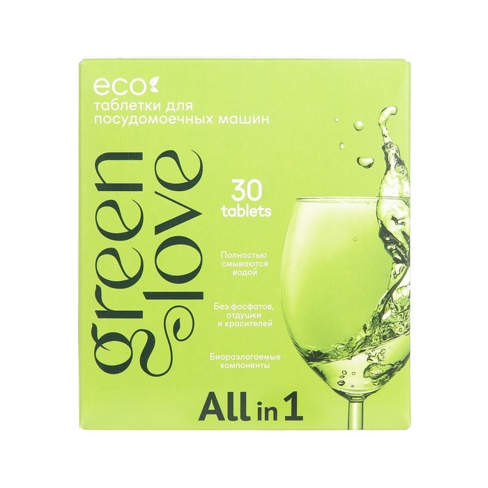 Таблетки экологичные для посудомоечных машин GREEN LOVE, 30 штук