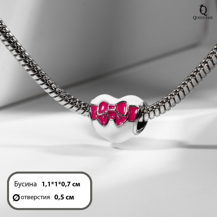 Талисман «Сердце» с бантом, цвет бело-розовый в чернёном серебре