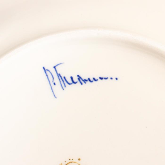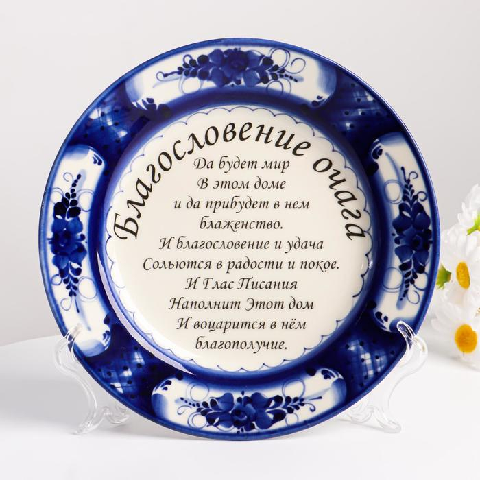 Тарелка "Благословение очага", на подставке, 18 см, гжель, фарфор