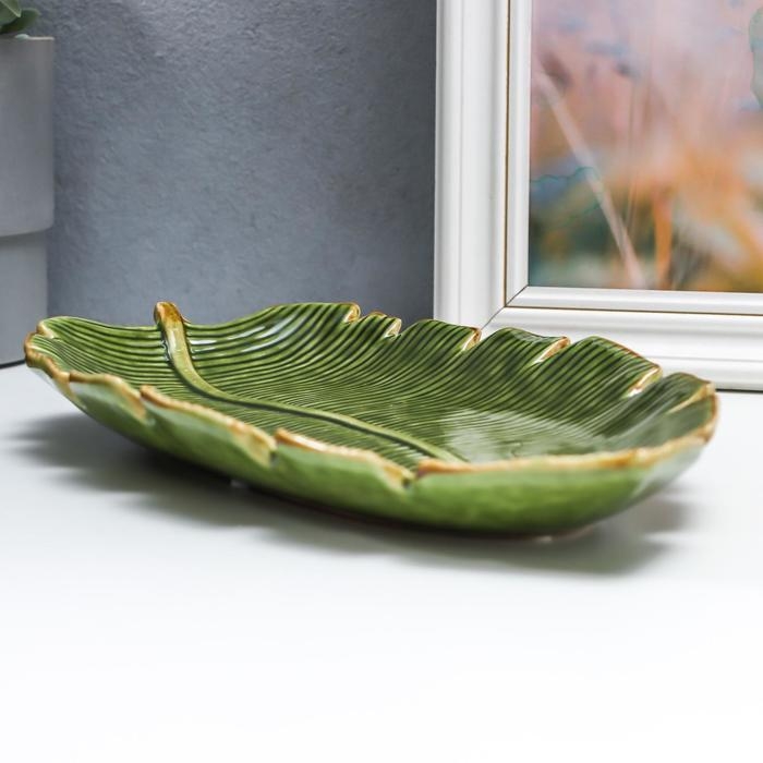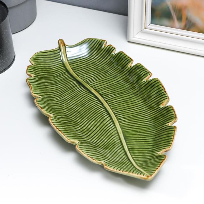 Тарелка декоративная керамика "Пальмовый лист 3,2х16х29 см