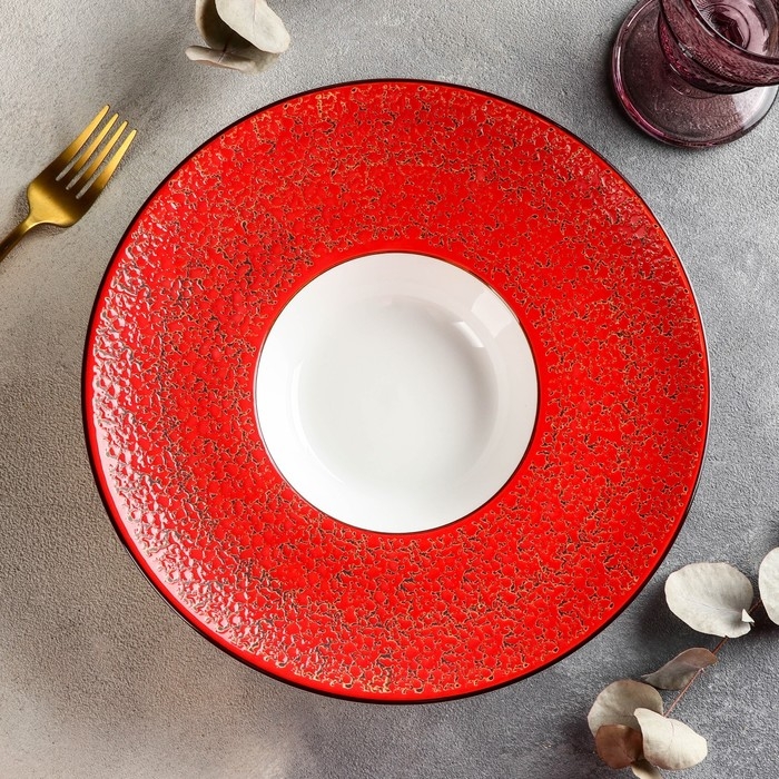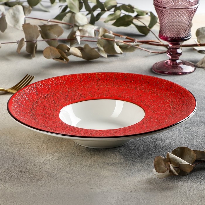 Тарелка фарфоровая для пасты Wilmax Splash, 250 мл, d=27 см, цвет красный