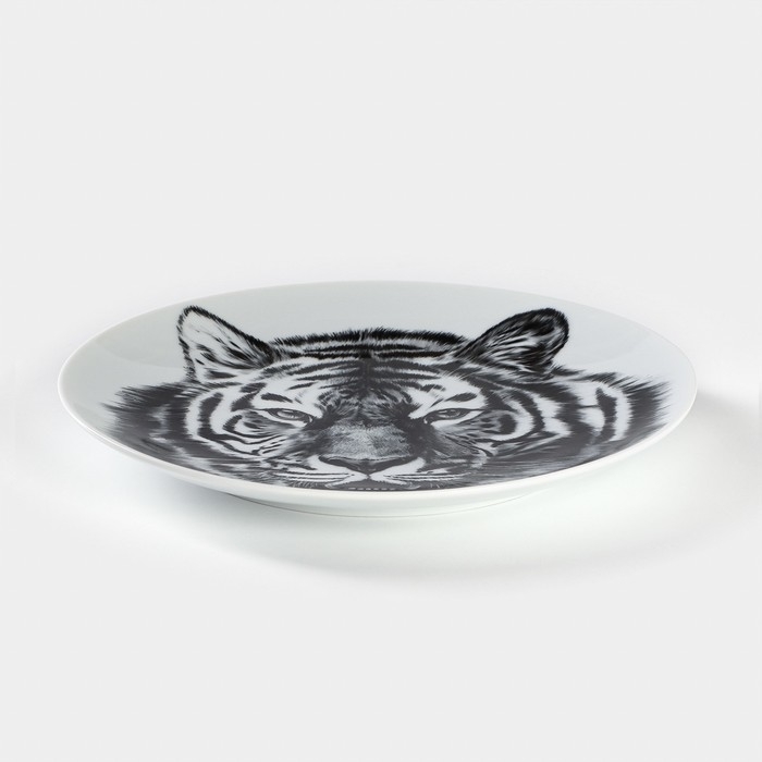 Тарелка фарфоровая «Тигр», d=24 см, белая