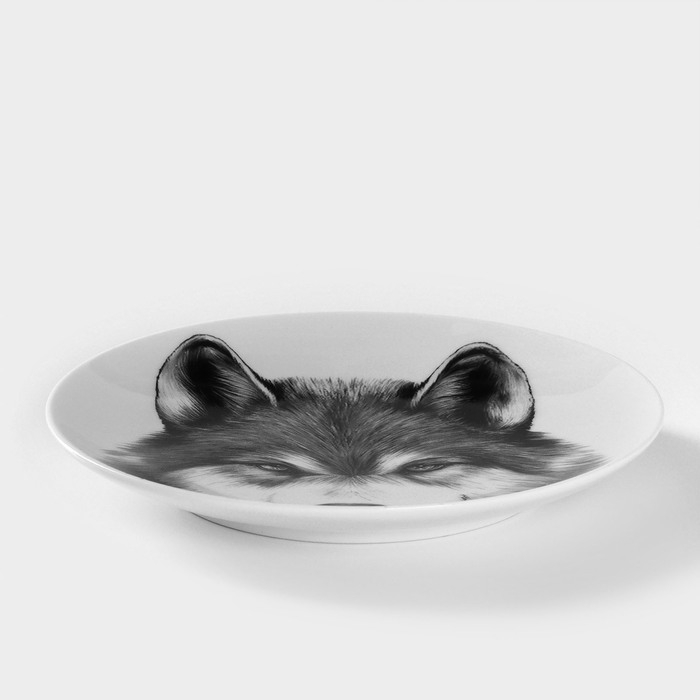 Тарелка фарфоровая «Волк», d=17,5 см, белая