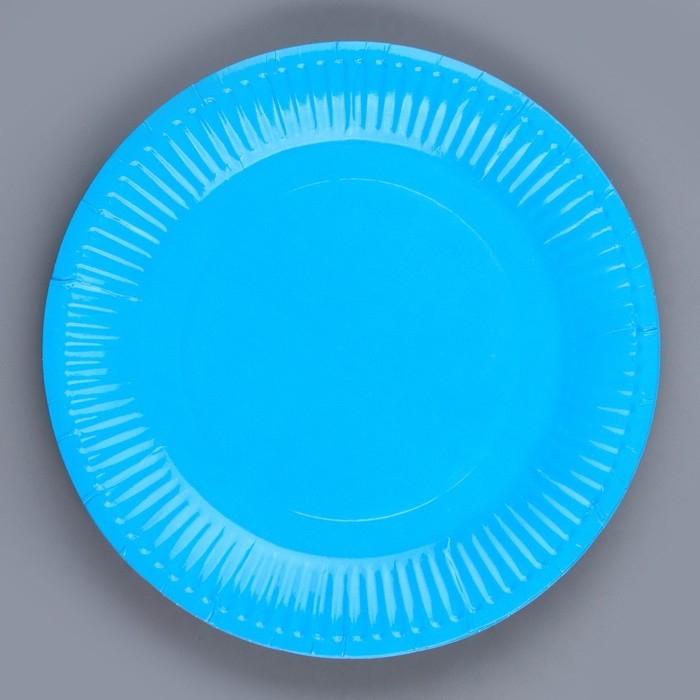 Тарелка одноразовая бумажная однотонная, голубой цвет 18 см, набор 10 штук