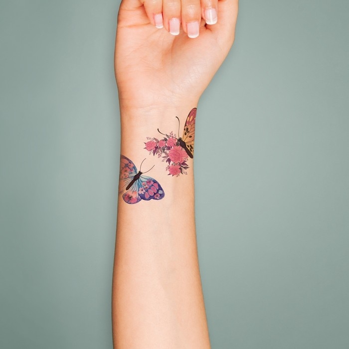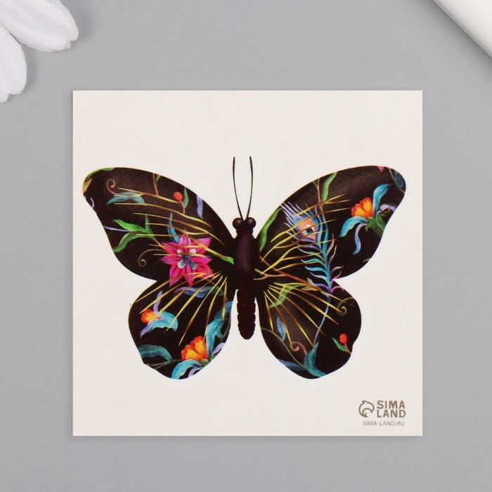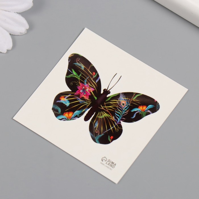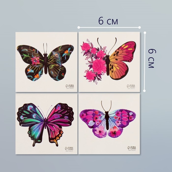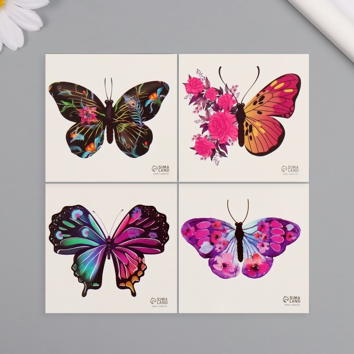Татуировка на тело чёрная "Бабочки с цветами" набор 4 шт 6х6 см