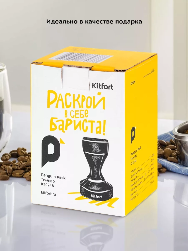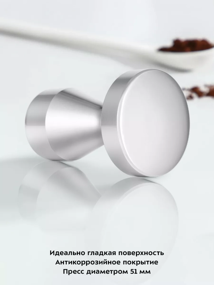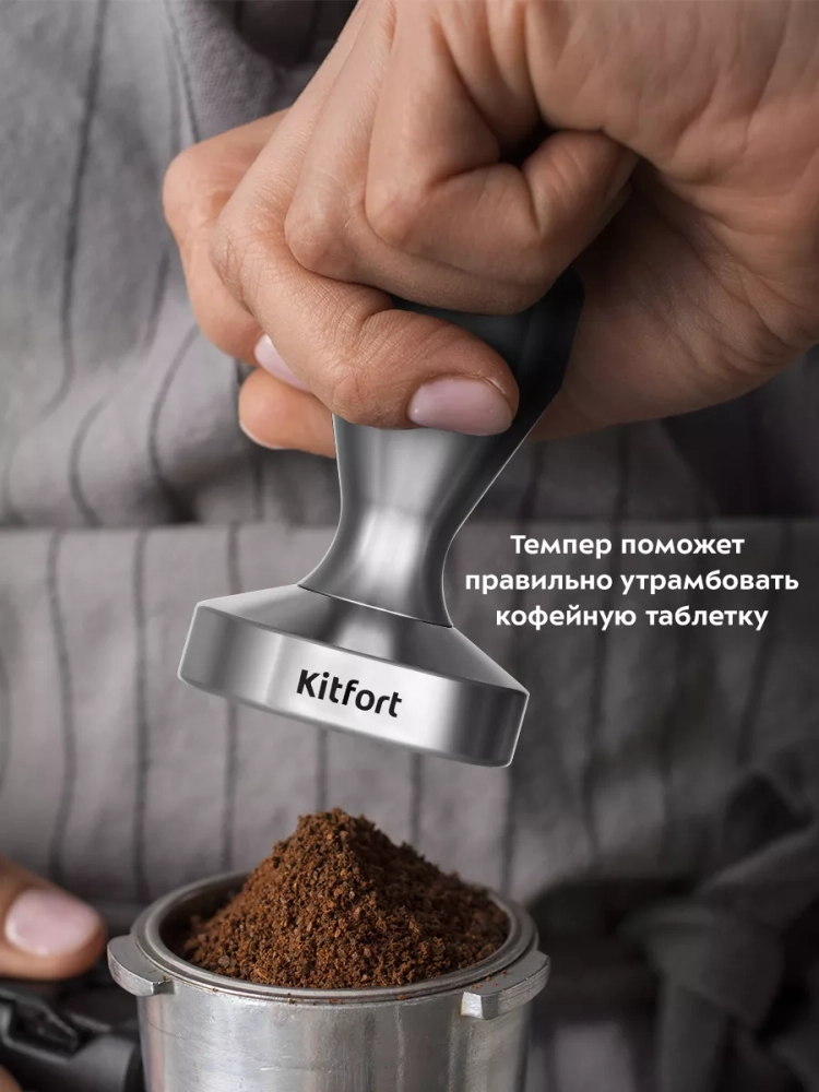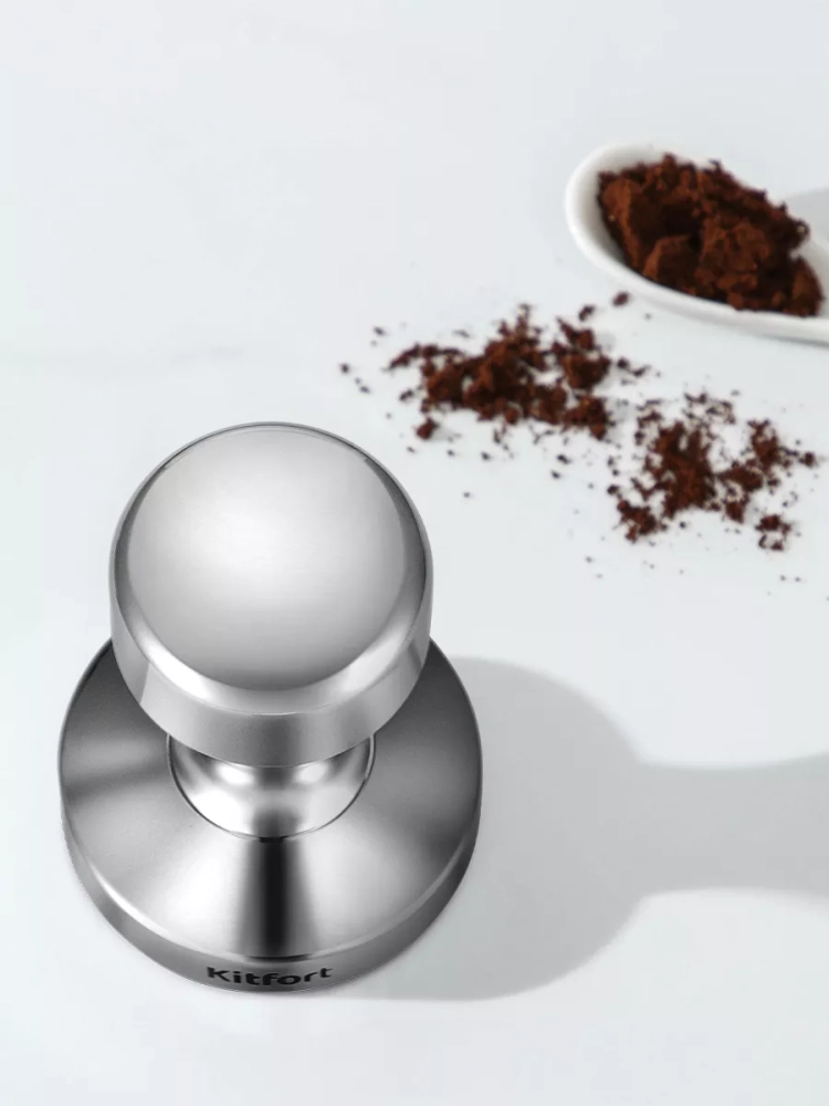 Темпер Kitfort KT-1248 поможет правильно утрамбовать кофейную таблетку. Процесс трамбовки также называют темперовкой. Металлический темпер Китфорт KT-1248 состоит из съемной ручки и пресса диаметром 51 мм, который подойдет для большинства кофеварок: пресс должен быть меньше внутреннего диаметра фильтра на 0,5–1 мм. Благодаря идеально гладкой поверхности пресса и весу устройства (более значительному, чем у пластикового аналога) темперовка будет равномерной и плотной.