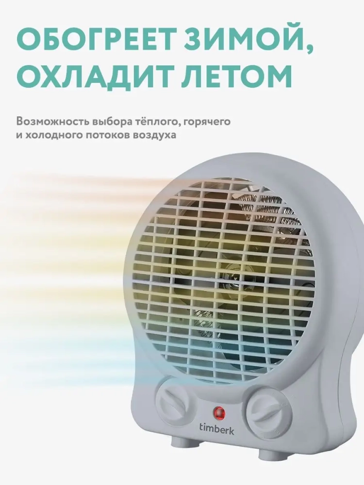 Настольные тепловентиляторы Timberk T-FH2-B10S-W обеспечивают максимально комфортную температуру при любых погодных условиях. На выбор пользователя три режима работы прибора: холодный, тёплый и горячий воздух. Быстрый выход на максимальную мощность нагрева говорит об эффективности работы тепловентилятора. Мощность 2000 Вт. Ступенчатое переключение мощности нагрева. Холодный, тёплый, горячий воздушный поток. Настольная установка. Режим обдува без обогрева. Авторский дизайн Timberk. Спиральный нагревательный элемент. Регулируемый воздушный поток. Высококачественный термостат на основе медного сплава. Защита от перегрева.