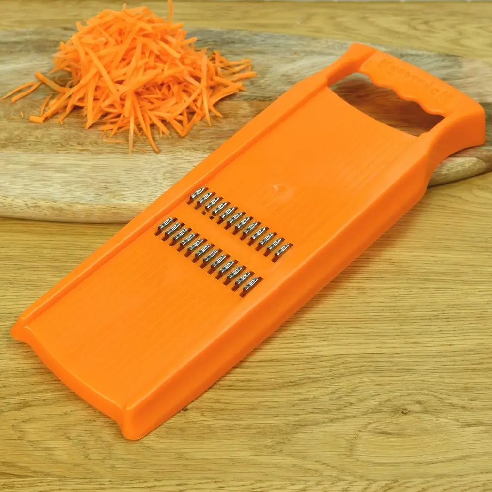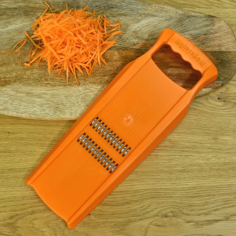 Используйте терку для нарезки и шинковки различных продуктов: овощей, фруктов, сыра. Терка идеально подойдет для приготовления корейской моркови. Рабочая часть изготовлена из коррозионностойкой (нержавеющей) стали, корпус из пластмассы (ABS). После применения промойте терку мягкой щеткой с использованием жидких моющих средств.