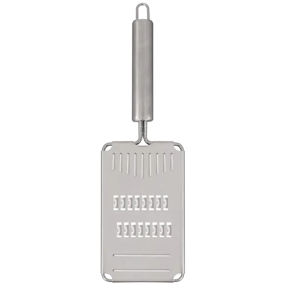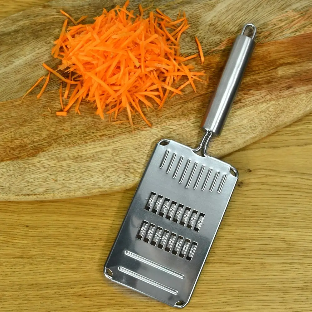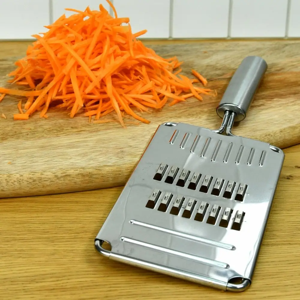 Терка подходит для приготовления пряной закуски или свежих салатов. Пользоваться приспособлением легко: овощи натираются в заранее подготовленную емкость. Терка подойдет для измельчения морковки, огурца, редиса, кабачков. В результате, овощи натираются соломкой, которую можно добавить в салат или украсить ею готовые блюда. Использование овощей разных цветов позволяет получать разноцветную соломку, которая будет отличным декором. Перед первым использованием и после каждого применения промыть мягкой щеткой или губкой с жидким моющим средством, сполоснуть и просушить. Можно мыть в посудомоечной машине.