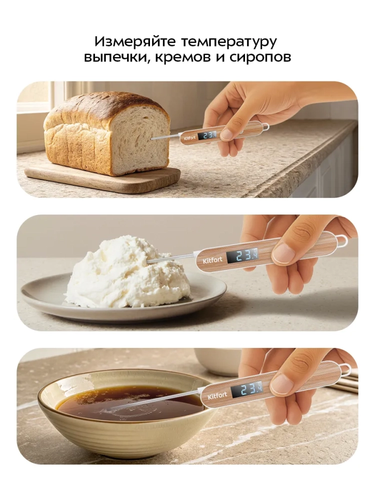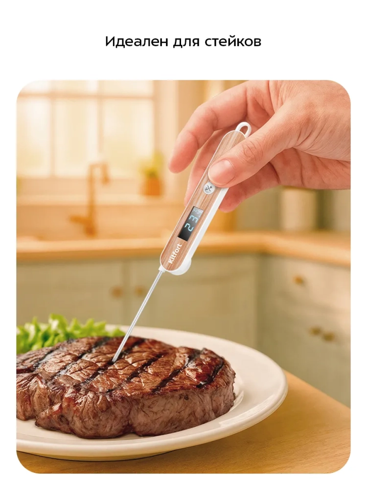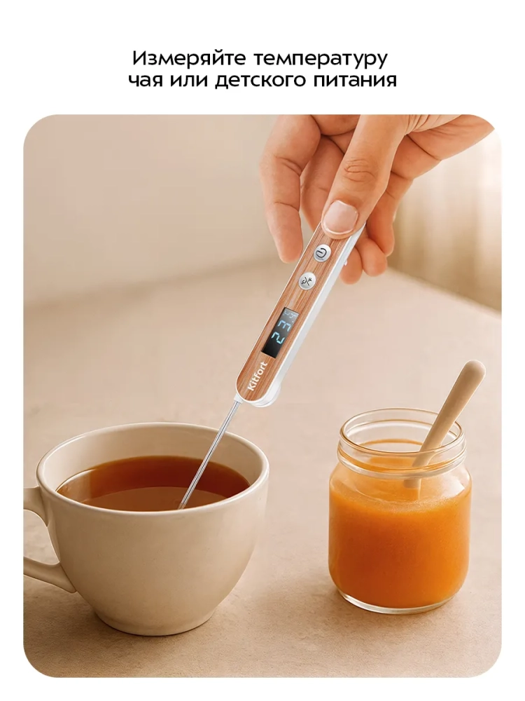 Термометр кулинарный Kitfort KT-6982 предназначен для определения температуры различных блюд и продуктов.