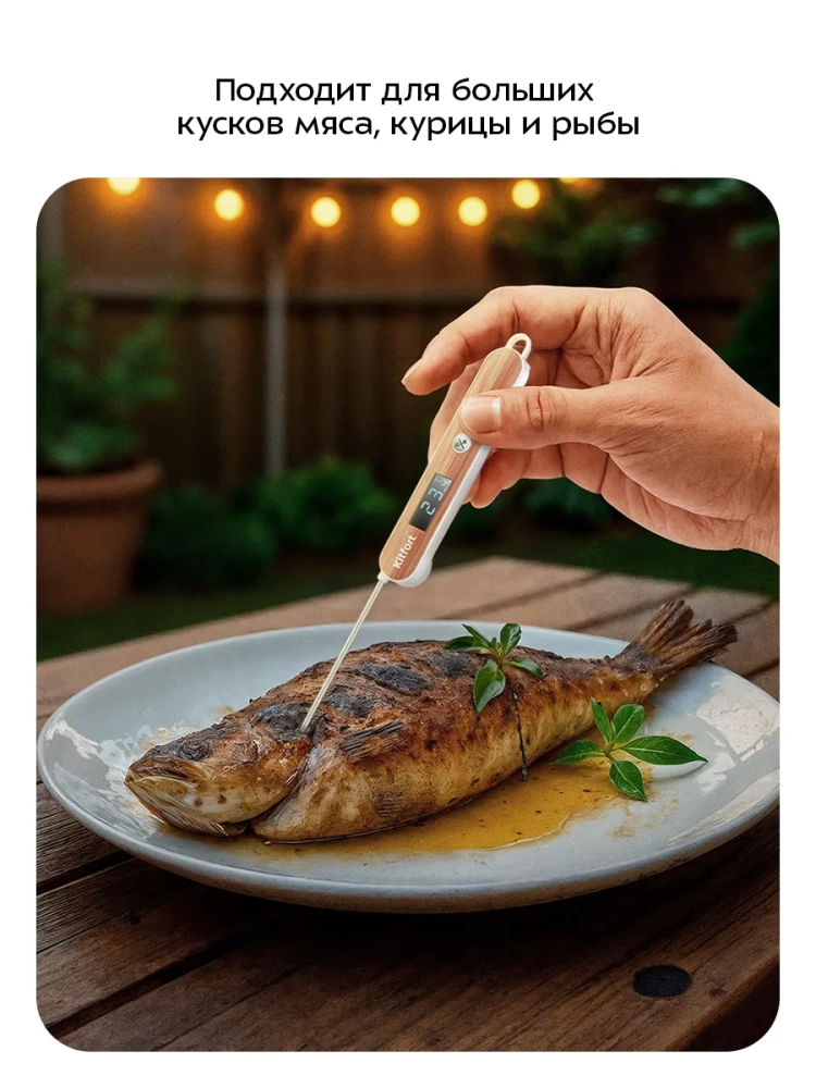 Теперь для определения готовности больших кусков мяса, курицы или рыбы нет необходимости разрезать их, чтобы проверить готовность. Так весь сок останется внутри, и вы не испортите внешний вид, разрезав мясо для проверки готовности.