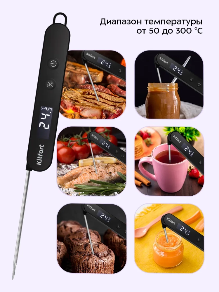 Термометр кулинарный Kitfort KT-6983 предназначен для определения температуры различных блюд и продуктов.