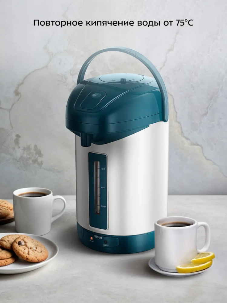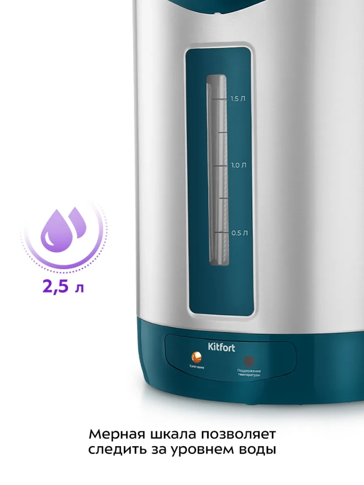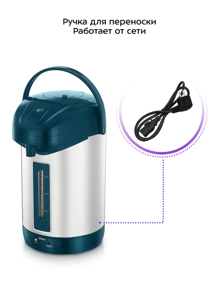 Термопот Kitfort КТ-2534 служит для кипячения и поддержания температуры воды с помощью периодического включения и отключения нагрева. Отличие термопота от обычного чайника в том, что термопот поддерживает температуру воды, поэтому у вас всегда есть горячая вода.