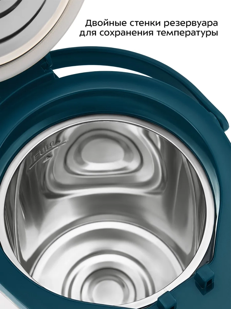 Двойные стенки термопота помогают сохранить тепло и реже включать нагрев, что поможет сэкономить на электроэнергии. Корпус термопота состоит из пластика и нержавеющей стали, а резервуар — из нержавеющей стали. Внутренняя часть крышки также сделана из нержавеющей стали, поэтому вода не соприкасается с пластиковыми частями устройства.