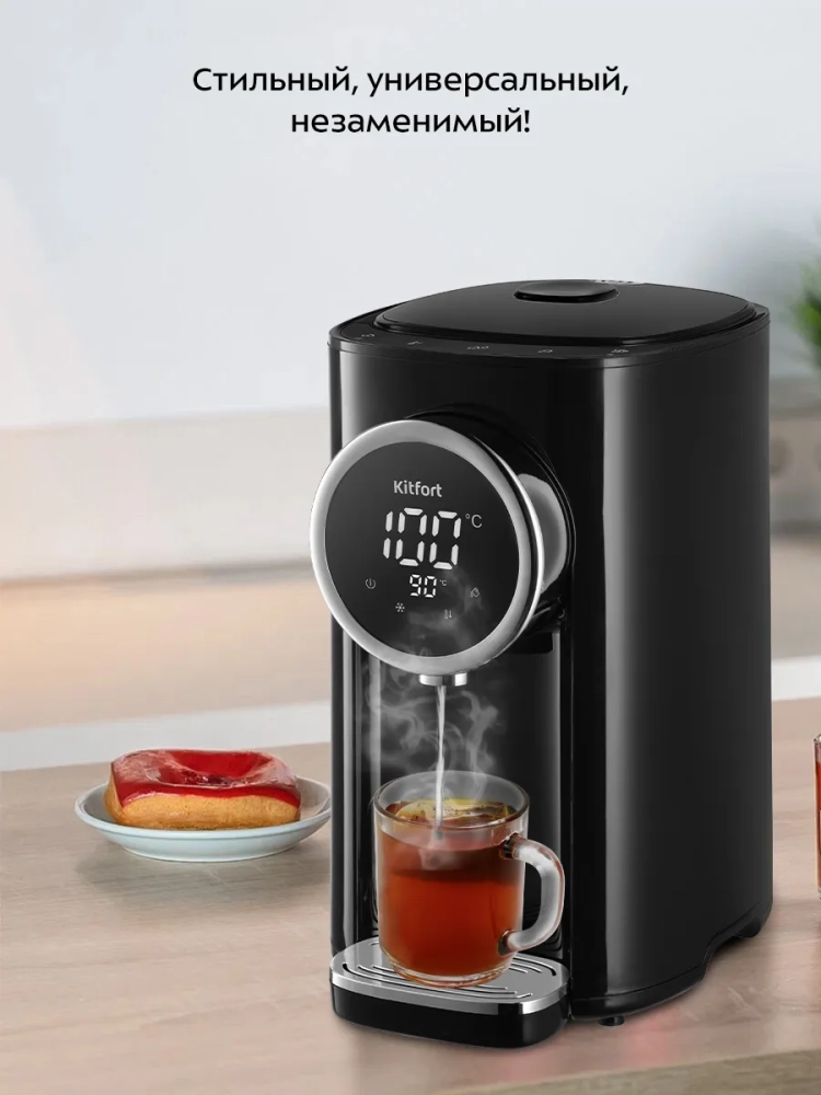 Электрический термопот Kitfort — это идеальный выбор для тех, кто ценит удобство и надежность в кухонной технике. С его помощью вы всегда будете иметь под рукой горячую воду для чая, кофе или других нужд.