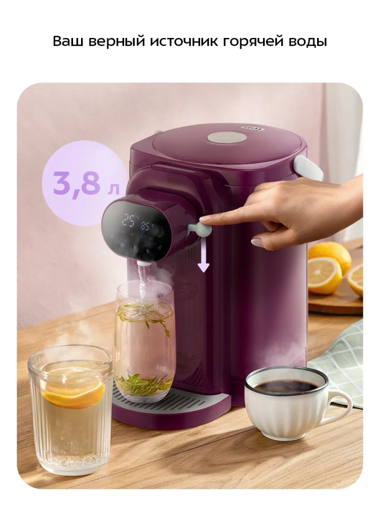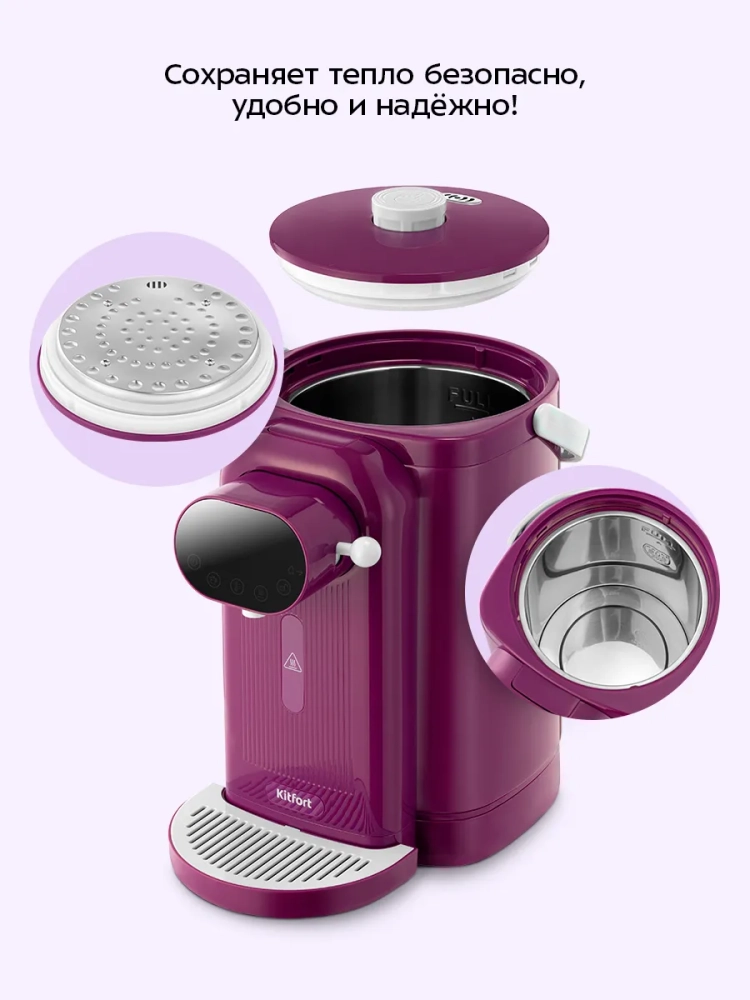 Термопот Kitfort КТ-2535 служит для подачи воды заданной температуры и для поддержания температуры воды с помощью периодического включения и отключения нагрева. Отличие термопота от обычного чайника в том, что термопот поддерживает заданную температуру воды, поэтому она может оставаться горячей долгое время, если вам это необходимо. Также удобно наливать воду благодаря автоматической подаче воды.