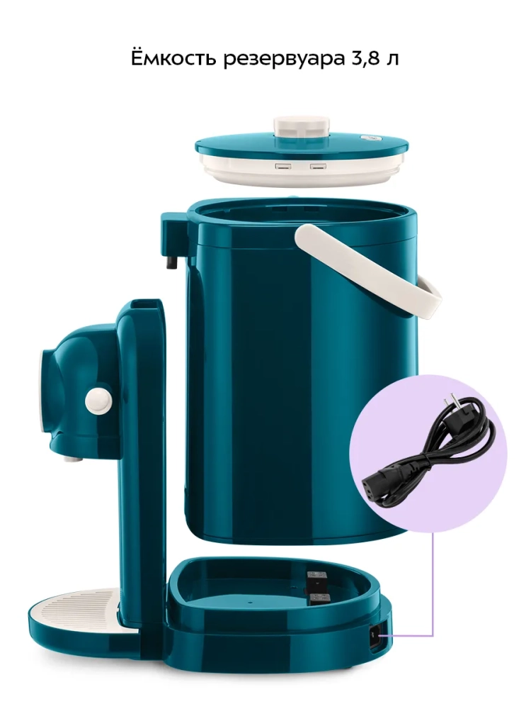 Двойные стенки резервуара для воды помогают сохранить тепло и реже включать нагрев, что поможет сэкономить на электроэнергии. Корпус резервуара состоит из пластика, а внутренняя часть — из нержавеющей стали. Внутренняя часть крышки также сделана из нержавеющей стали, поэтому вода не соприкасается с пластиковыми частями устройства. Термопот оснащен съемным поддоном для капель с решеткой. Ножки с присосками не позволят скользить прибору по столу.
