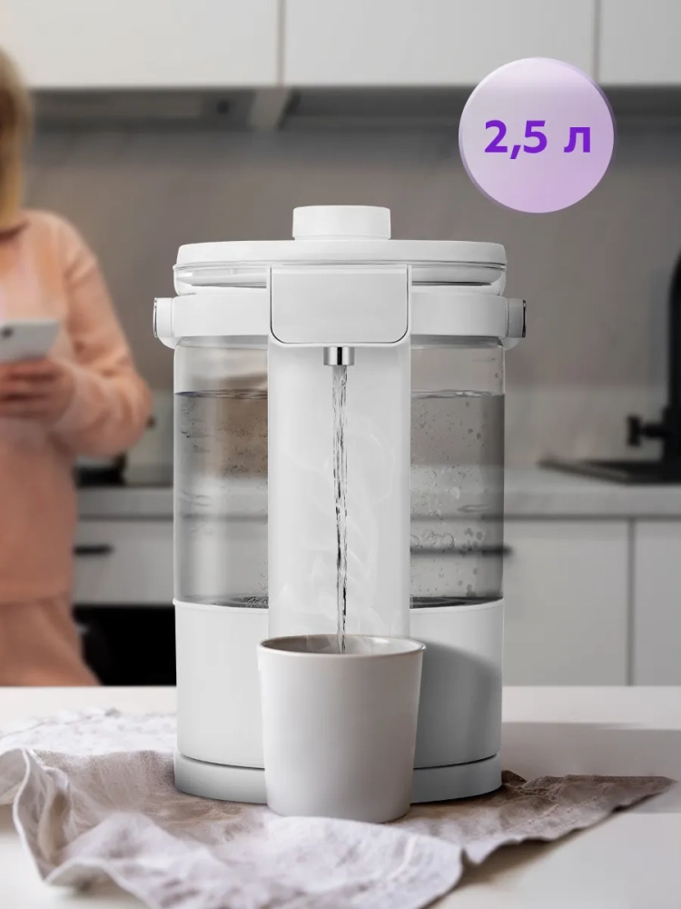 Термопот имеет защиту от перегрева и от включения без воды.
