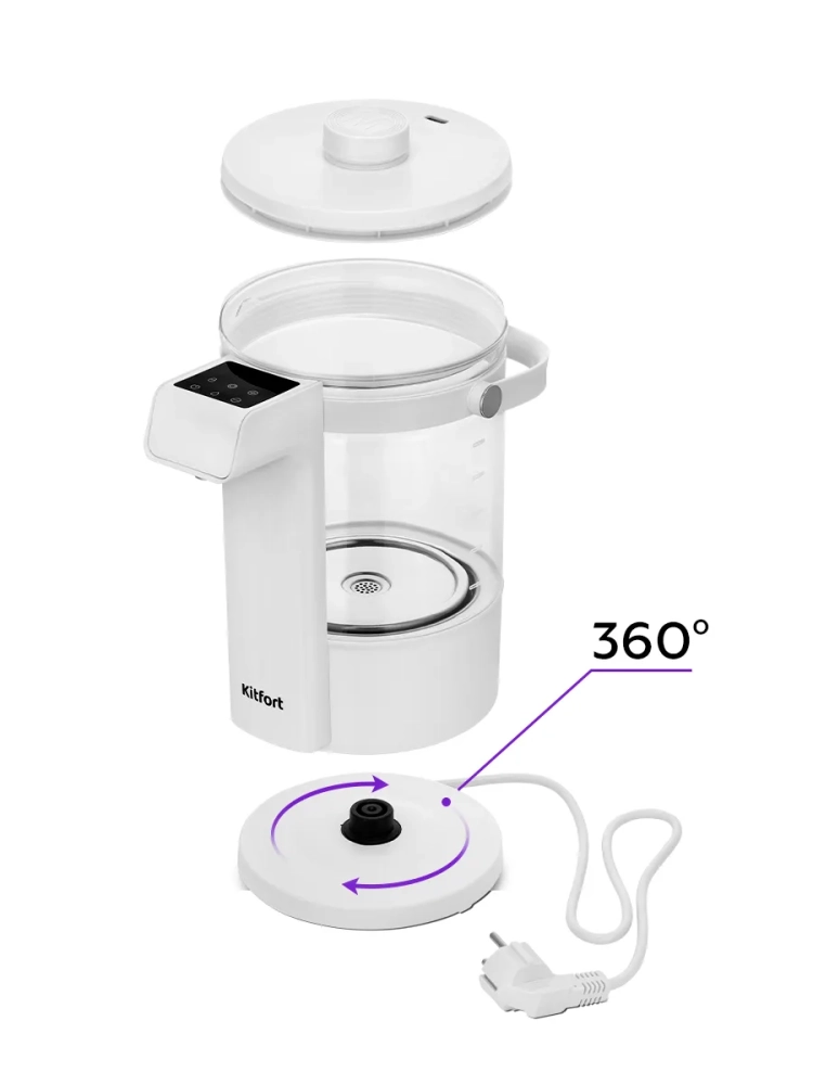 Подставка с центральным контактом дает возможность располагать на ней термопот в любом положении, обеспечивая вращение на 360°.