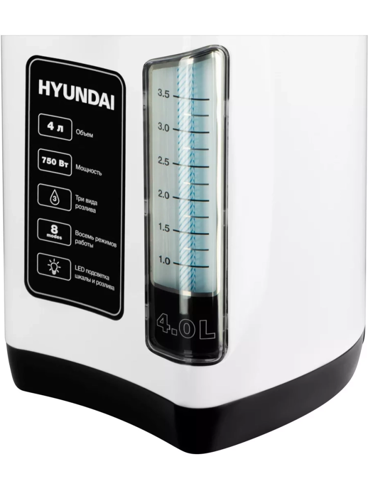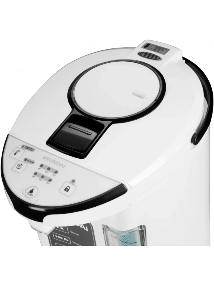 Термопот Hyundai HYTP-4840 белый/черный, объем 4л., мощность 750Вт, температурные режимы 45/55/65/75/85/98/100/поддержание температурыС, комбинированный насос