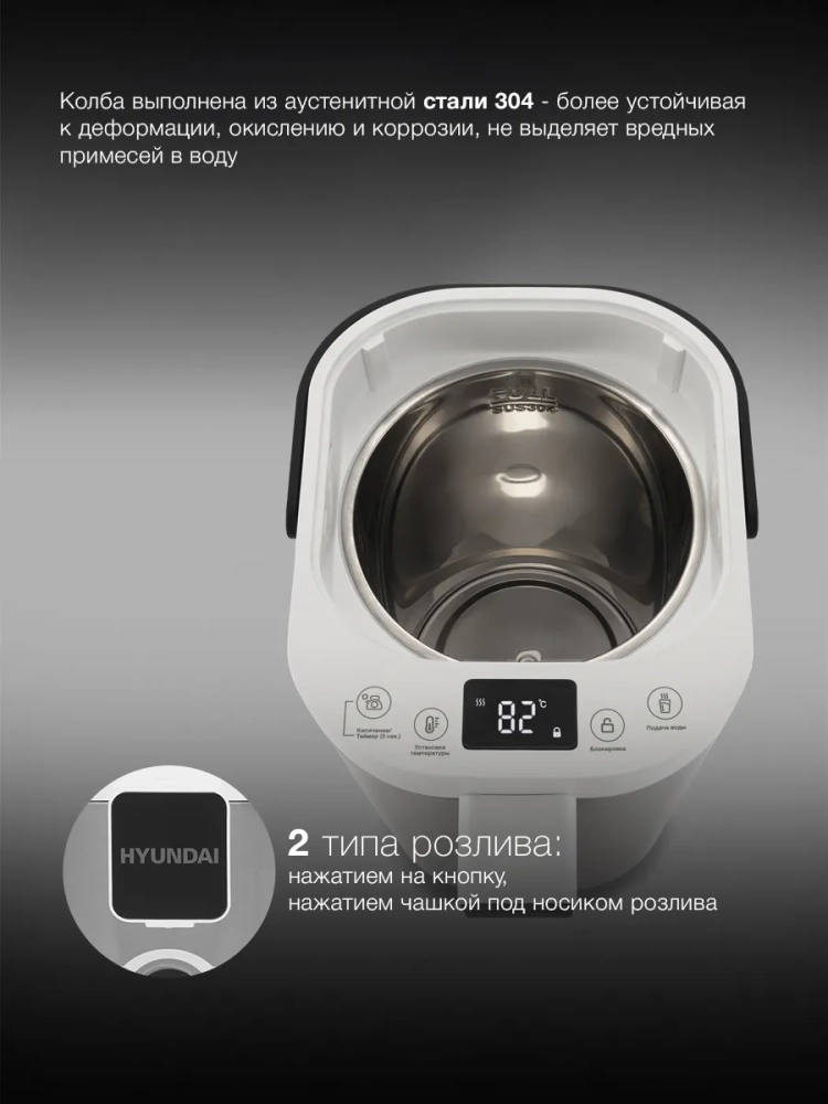 • Функция поддержания температуры — вода всегда остаётся горячей без повторного кипячения.