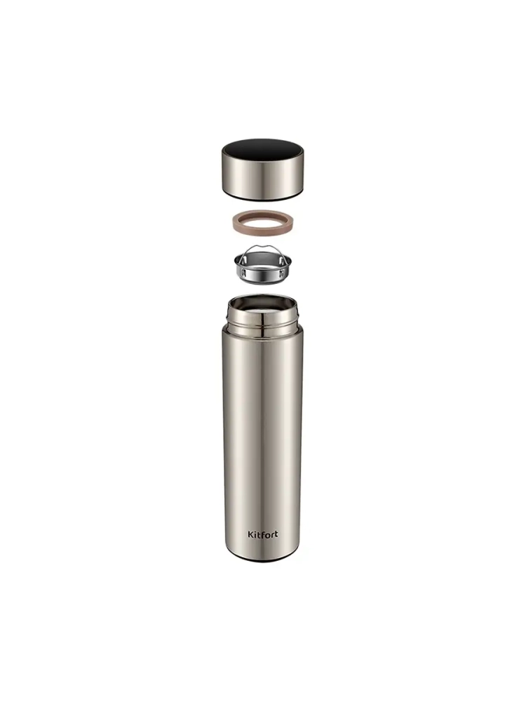 Термос Kitfort КТ-1221 - идеальный вариант для переноски горячих и холодных напитков. Главное достоинство термоса Китфорт КТ-1221 - сохранение температуры содержимого 10-12 часов. Металлический термос надежный и прочный. Крышку и термос перед первым использованием необходимо проверить на герметичность. Для этого наберите холодной воды, плотно закрутите крышку и переверните его. Крышка должна обеспечивать сохранность содержимого. В КТ-1221 навинчивающаяся крышка с силиконовым уплотнительным кольцом. Такая конструкция защищает от протеканий. На крышке располагается сенсорный дисплей, который показывает температуру напитков внутри термоса. Сеточка-фильтр позволит заварить напиток с кусочками ингредиентов. Для этого поместите их на установленную в термос сеточку-фильтр, например чайные листья или фрукты, и залейте кипяток. Термос КТ-1221 станет незаменимой вещью в длительных поездках, в походах, прогулках и в повседневной жизни.