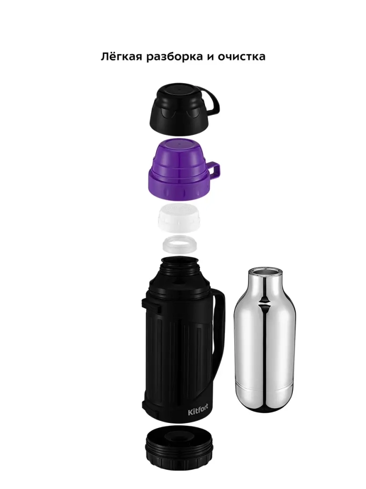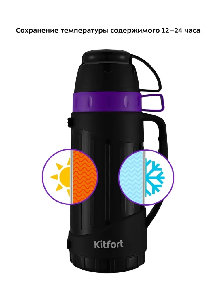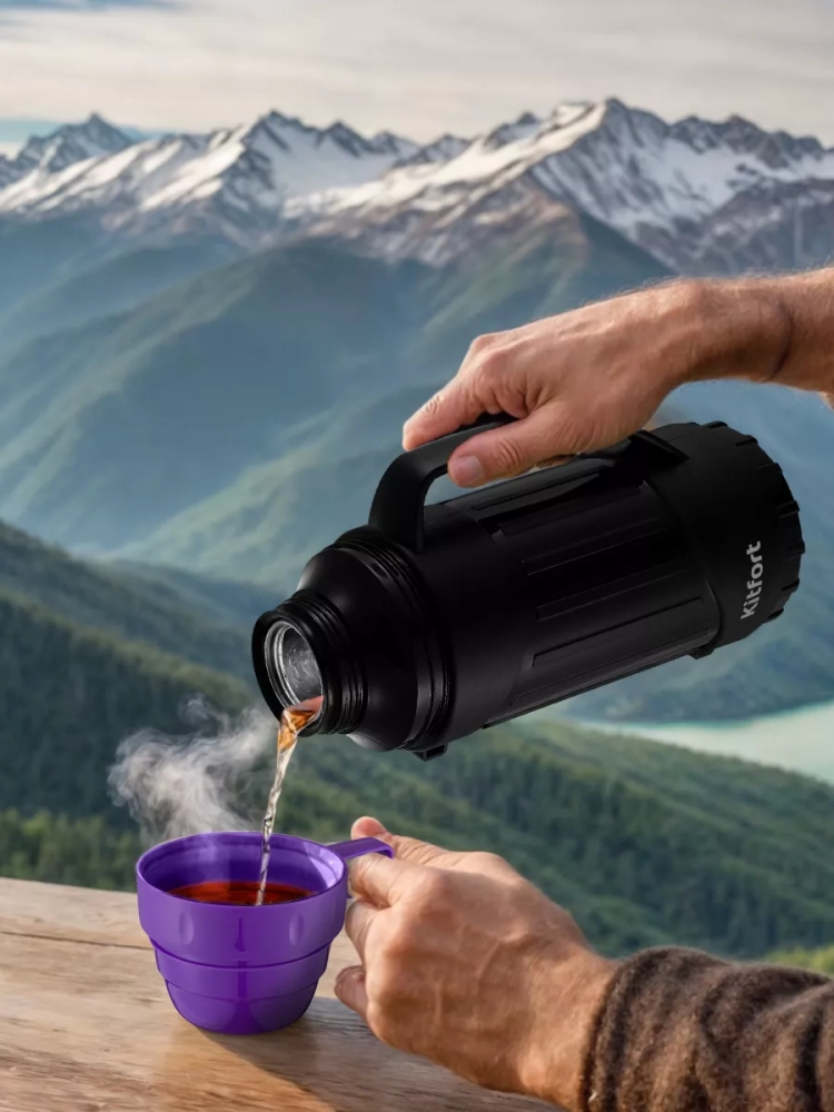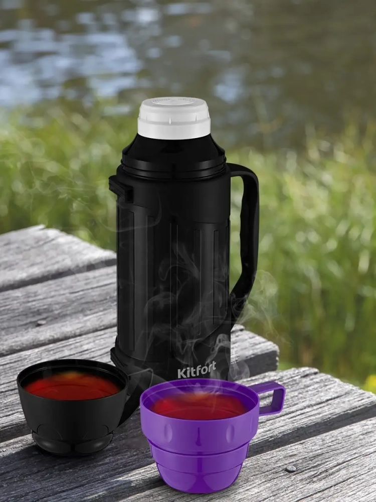 Термос Kitfort КТ-1233 - идеальный вариант для переноски горячих и холодных напитков. Главное достоинство термоса Китфорт КТ-1233 - сохранение температуры содержимого 12-24 часа. Корпус выполнен из пластика, а внутри - стеклянная колба. Стеклянная колба не впитывает запахи и обеспечивает длительное сохранение температуры жидкости. Главные преимущества термоса КТ-1233 заключаются в его компактности и легкости. Емкость термоса всего 1 л. Закрывается термос навинчивающейся крышкой, а также двумя крышками-чашками, из которых можно пить, что очень удобно. Термос имеет удобную ручку для переноски. Крышку и термос перед первым использованием необходимо проверить на герметичность. Для этого наберите холодной воды, плотно закрутите крышкой и переверните термос. Крышка должна обеспечивать сохранность содержимого. Термос можно разобрать на части, которые легко моются. Термос КТ-1233 станет незаменимой вещью в длительных поездках, в походах, прогулках и в повседневной жизни.