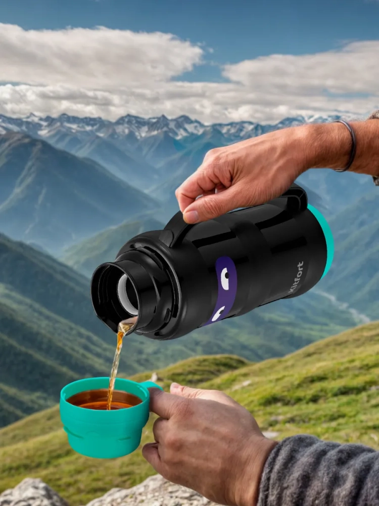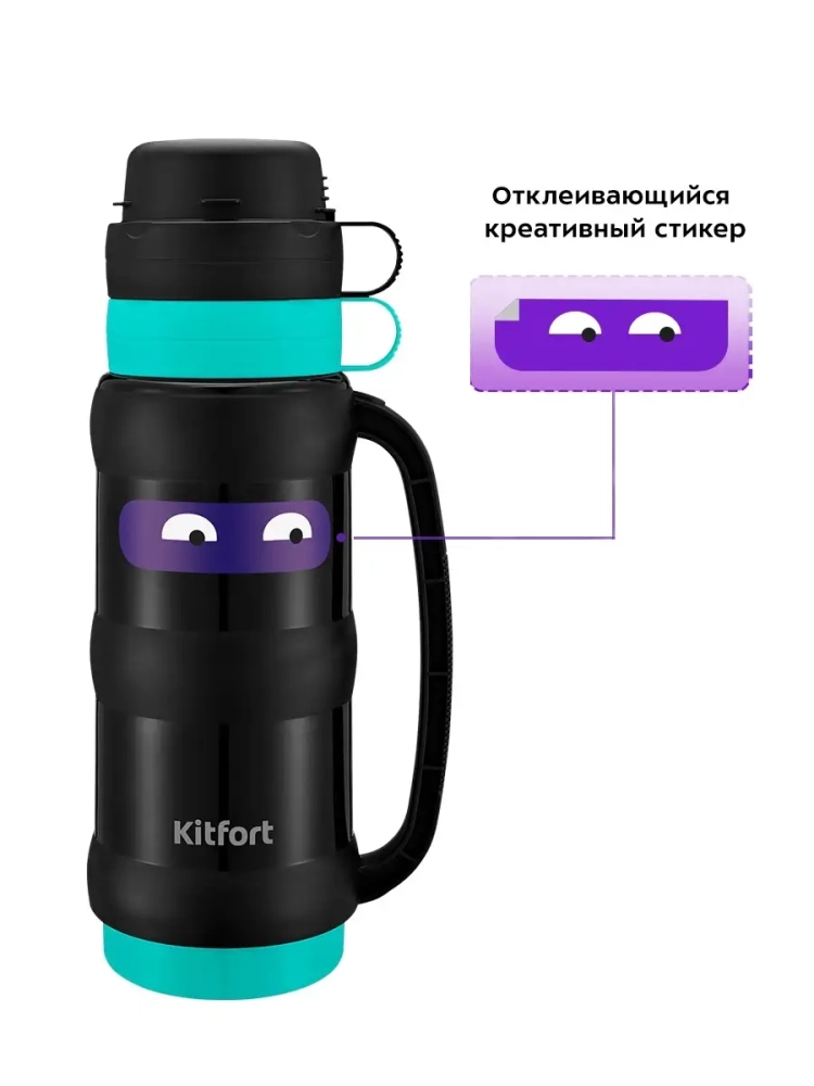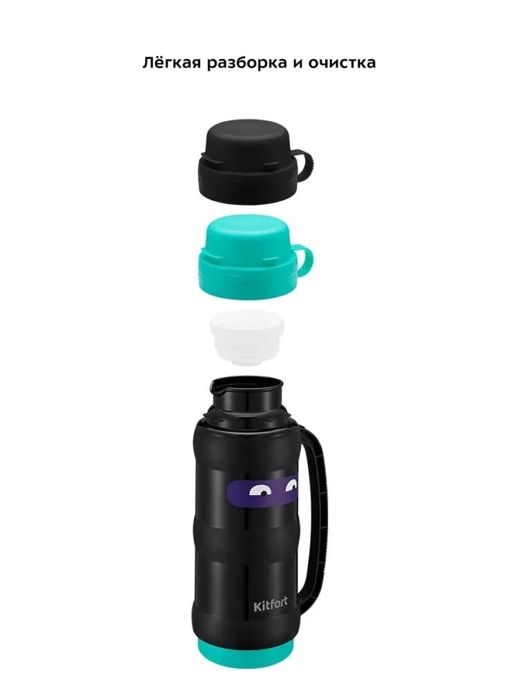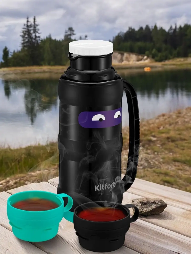 Термос Kitfort КТ-1234 - идеальный вариант для переноски горячих и холодных напитков. Главное достоинство термоса Китфорт КТ-1234 - сохранение температуры содержимого 12-24 часа. Корпус выполнен из пластика, а внутри колба из нержавеющей стали. Главные преимущества термоса КТ-1234 заключаются в его компактности и легкости. Емкость термоса всего 1 л. Закрывается термос навинчивающейся крышкой, а также двумя крышками-чашками, из которых можно пить, что очень удобно. Термос имеет удобную ручку для переноски. Крышку и термос перед первым использованием необходимо проверить на герметичность. Для этого наберите холодной воды, плотно закрутите крышкой и переверните термос. Крышка должна обеспечивать сохранность содержимого. Термос можно разобрать на части, которые легко моются. Термос КТ-1234 станет незаменимой вещью в длительных поездках, в походах, прогулках и в повседневной жизни.
