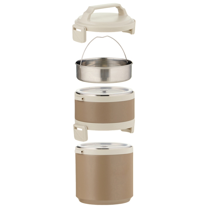Термос изготовлен из нержавеющей стали, которая не впитывает запахи и легко моется. Оснащен нескользящим дном, которое обеспечивает устойчивость на различных поверхностях и предотвращает его перемещение во время использования. Широкое горло облегчает наполнение и чистку. Термос имеет две секции, что дает возможность удобно хранить и разогревать различные блюда. Благодаря этому вы сможете наслаждаться как горячей, так и холодной пищей в любое время и в любом месте. Помимо этого, каждая из секций термоса имеет крышку с удобным клапаном, который обеспечивает легкое открытие и закрытие контейнера, а также способствует герметичности. В комплекте идет складная вилка-ложка, которая прикреплена к внутренней стороне крышки, что позволяет использовать термос как полноценную посуду и не требует дополнительных приборов. А также предусмотрена ручка для комфортной транспортировки термоса.