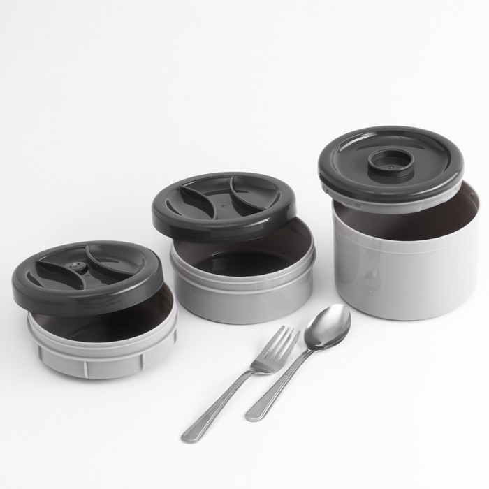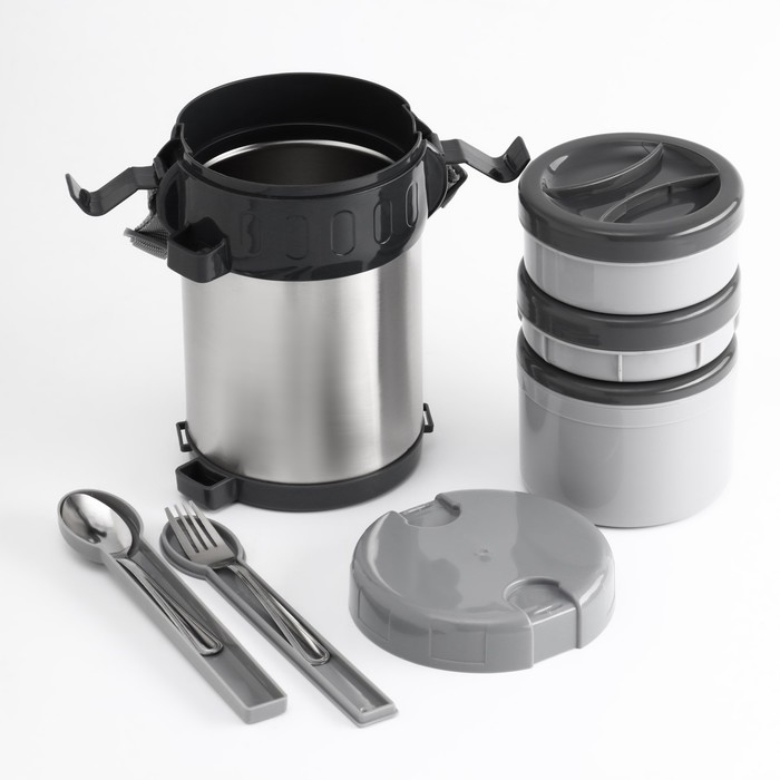 - Имеются 3 дополнительных ёмкости с крышками для еды (для супа и гарнира).