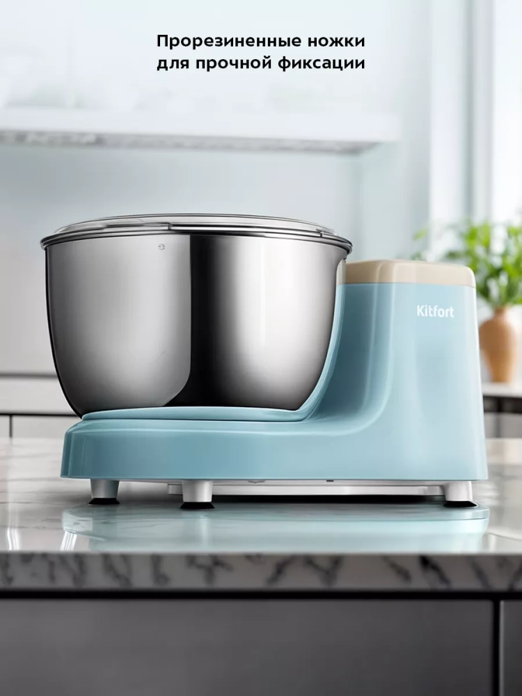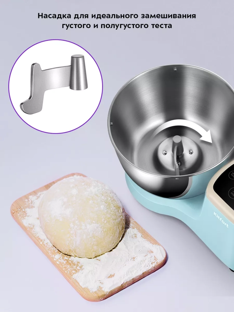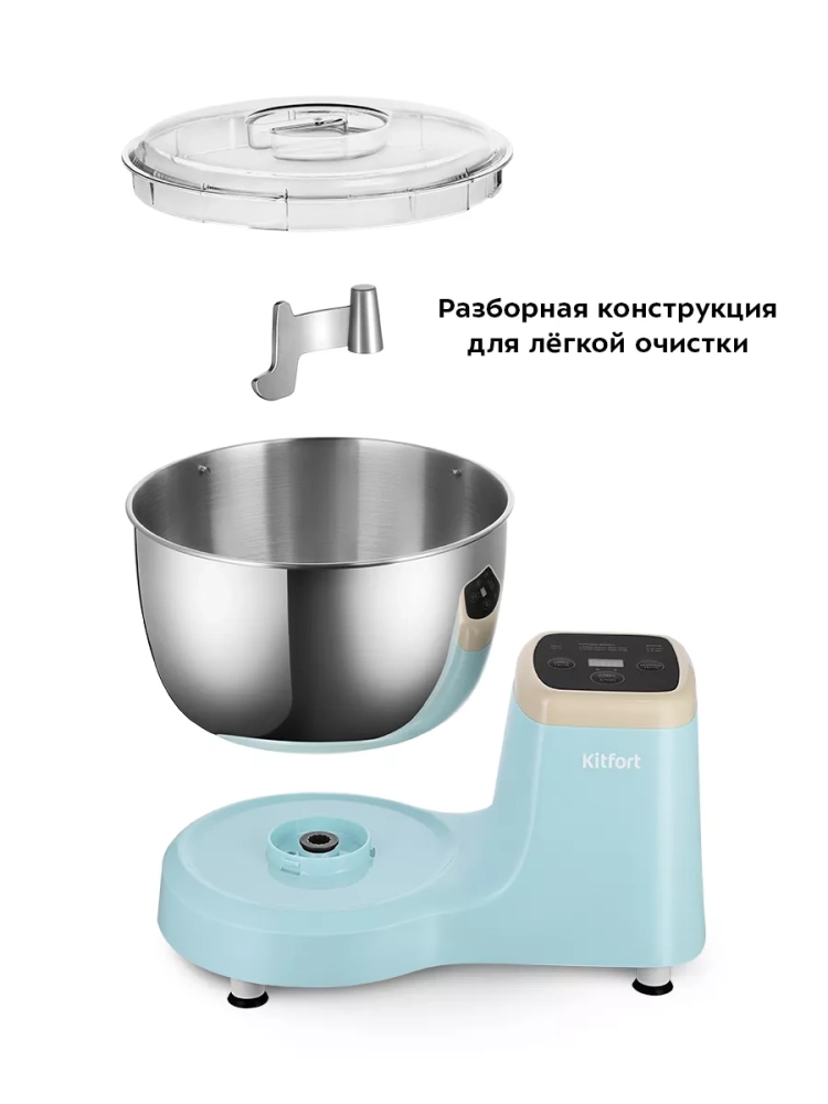 Тестомесильная машина Kitfort КТ-3497 поможет вам замесить крутое тесто для пельменей и пирогов, слоеное тесто для булочек, а также жидкое тесто для блинов.