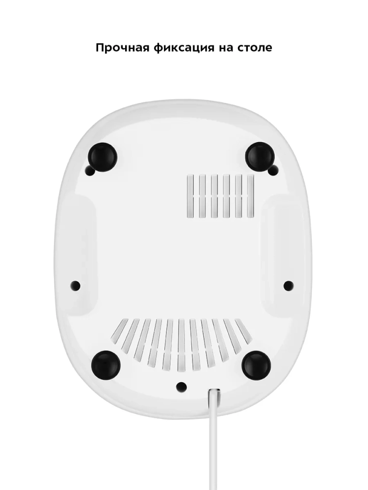 Во время работы насадка для замешивания теста вращается вокруг своей оси. Это обеспечивает идеальное качество смешивания без комков. Надежный двигатель позволяет быстро и эффективно смешивать ингредиенты для теста. Прорезиненные ножки с присосками прочно фиксируют прибор на столе.
