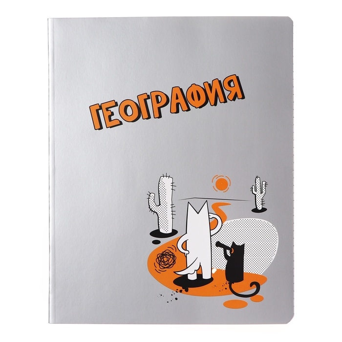 Тетрадь предметная "Пёс и Кот" 48 листов в клетку "География", обложка мелованный картон, металлизированная краска, ВД-лак, блок офсет