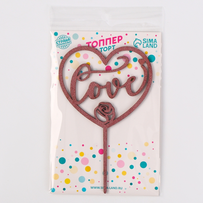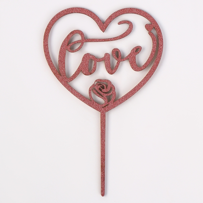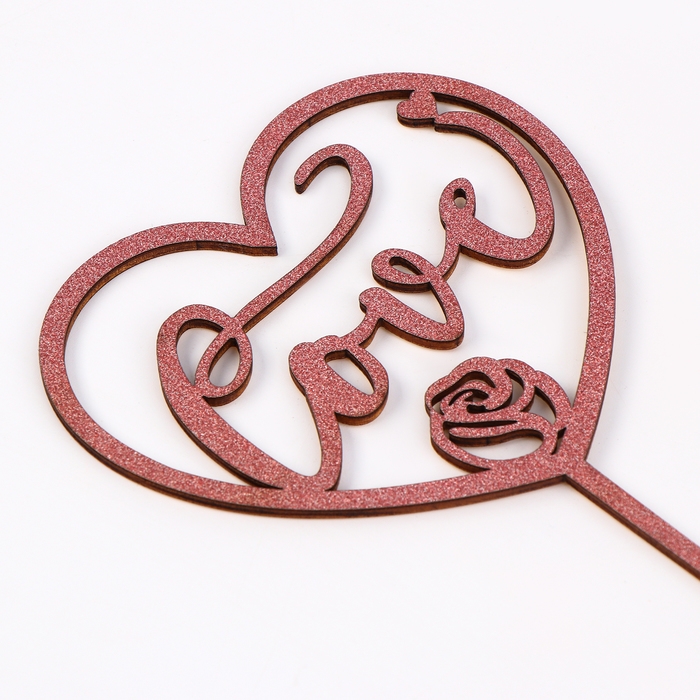 Топпер деревянный «Сердце», с блёстками, цвет розовый