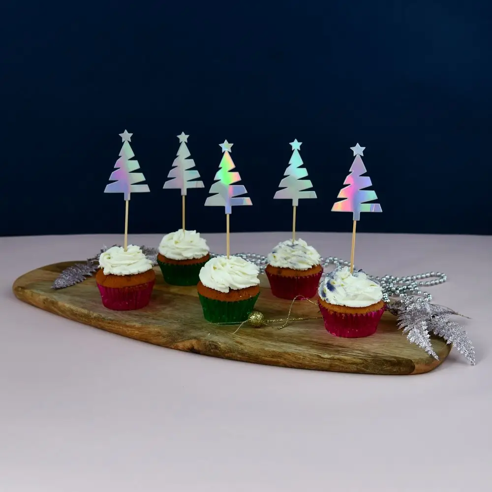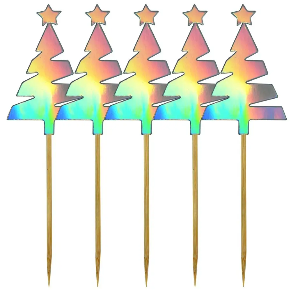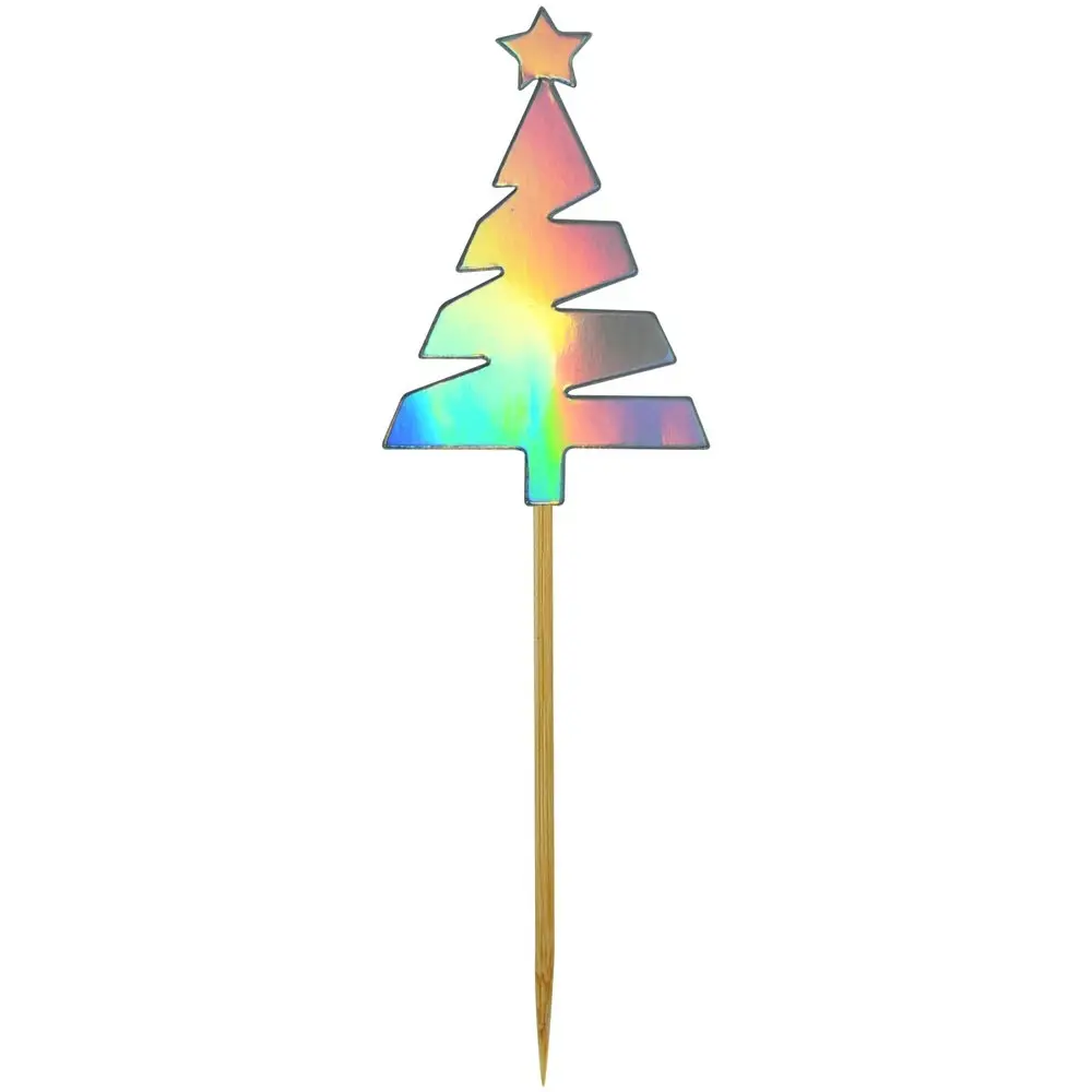 Придайте индивидуальности своему празднику и удивите ваших родных и близких. Топпером в форме елочки можно украсить торт, кекс, маффин или другую выпечку. Такой топпер добавит оригинальности и красоты в любой десерт и станет настоящим украшением праздника. Топпер можно использовать как шпажку при сервировке стола многослойными мини-бутербродами (канапе) из овощей, фруктов, ягод, сыров и мясных продуктов. Выбирайте любимые ингредиенты для приготовления порционных блюд, насаживайте их на топпер и готовьте с удовольствием! Топперы заменят десертные вилочки на вашем праздничном столе, а оригинальный дизайн поднимет настроение гостям. Предназначены для одноразового использования. Изготовлены из дерева, декор из бумаги. Общая длина 15 см.