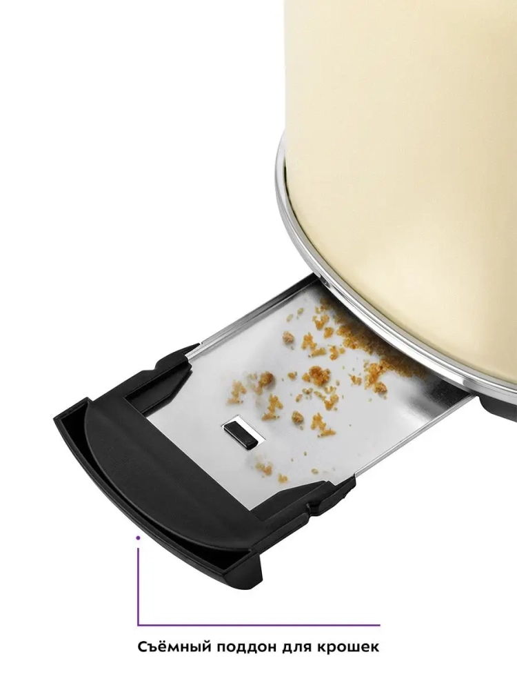 Снизу расположен выдвижной поддон для крошек, поэтому чистить тостер просто и удобно.