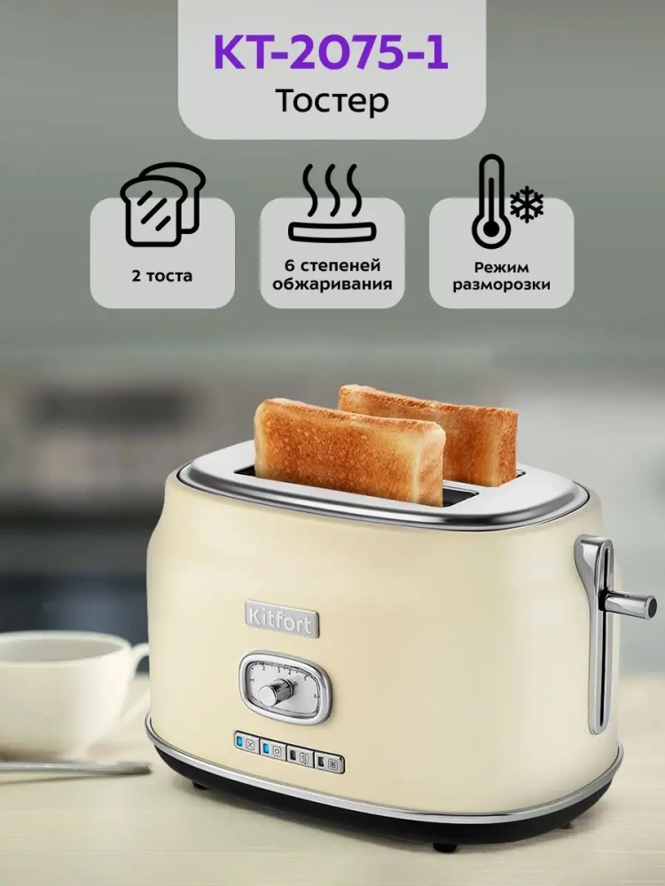 Электрический тостер Kitfort КТ-2075 создан для тех, кто любит полакомиться ароматным и хрустящим горячим поджаренным хлебом. Особый вкус и цвет корочки тостов получаются такими благодаря карамелизации сахара, содержащегося в муке, при инфракрасном нагреве в процессе приготовления.