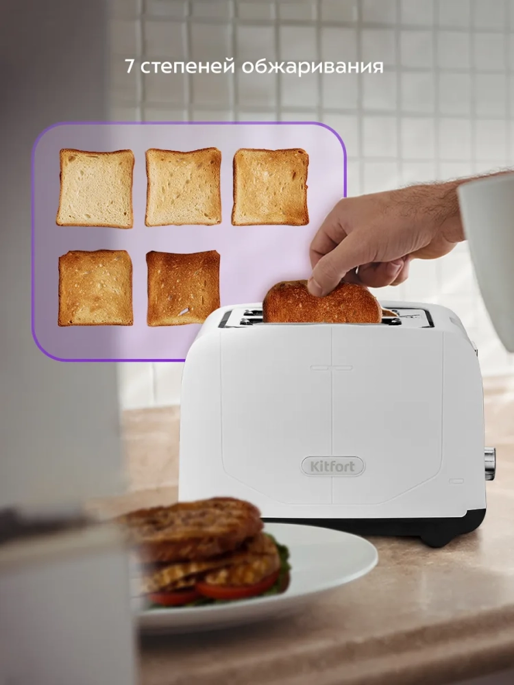 Электрический тостер Kitfort КТ-6408 создан для тех, кто любит полакомиться ароматным и хрустящим горячим поджаренным хлебом. Особый вкус и цвет корочки тостов получаются такими благодаря карамелизации сахара, содержащегося в муке, при инфракрасном нагреве в процессе приготовления.