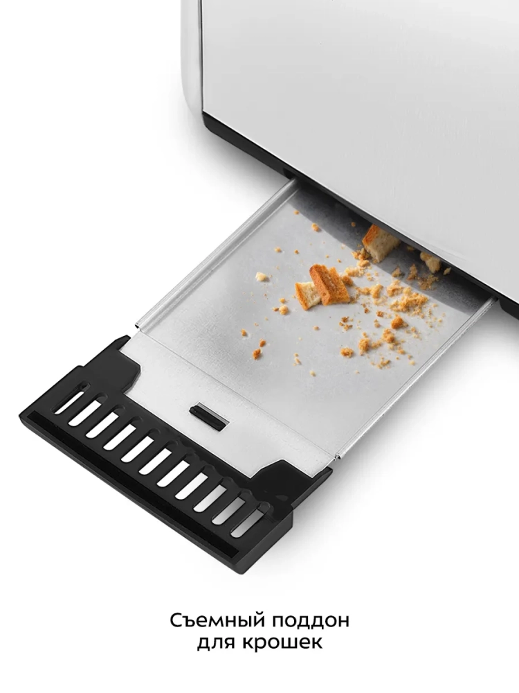 Съемный поддон для крошек позволяет легко и удобно очистить тостер от хлебных крошек.