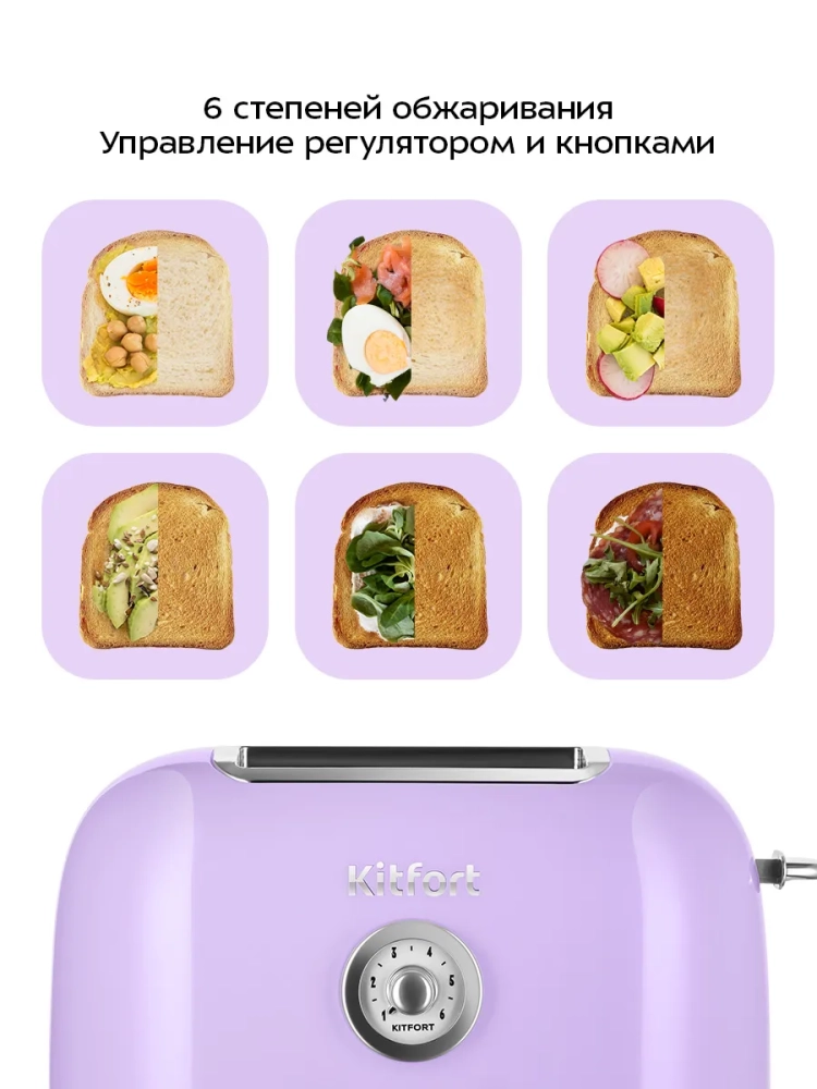 Электрический тостер Kitfort КТ-6831 создан для тех, кто любит ароматный и хрустящий горячий поджаренный хлеб. Особый вкус и цвет корочки тостов получаются такими благодаря карамелизации сахара, содержащегося в хлебе, при инфракрасном нагреве в процессе приготовления.