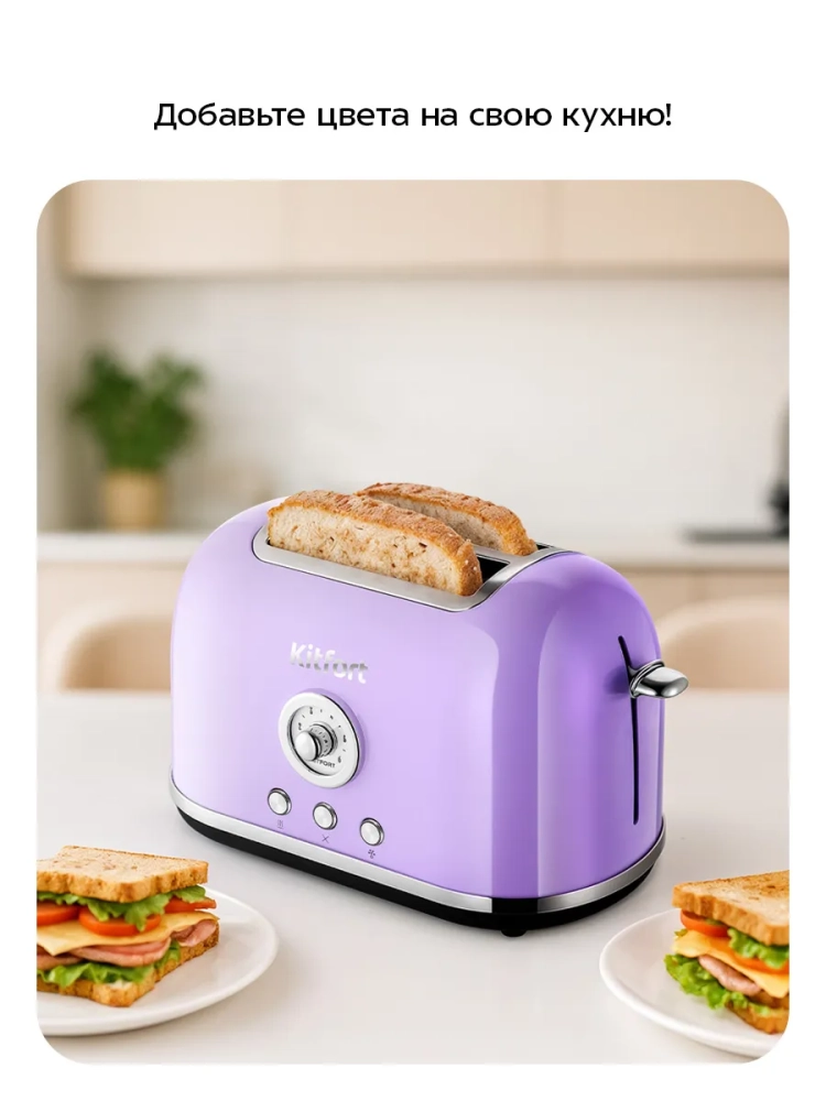 Тостер для хлеба с поддоном для крошек КТ-6831 - 815 Вт