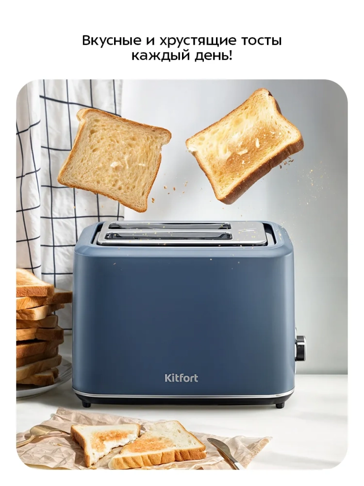 Электрический тостер Kitfort КТ-6874 создан для тех, кто любит полакомиться ароматным и хрустящим поджаренным хлебом. Особый вкус и цвет корочки тостов получаются такими благодаря карамелизации сахара, содержащегося в муке, при инфракрасном нагреве в процессе приготовления.