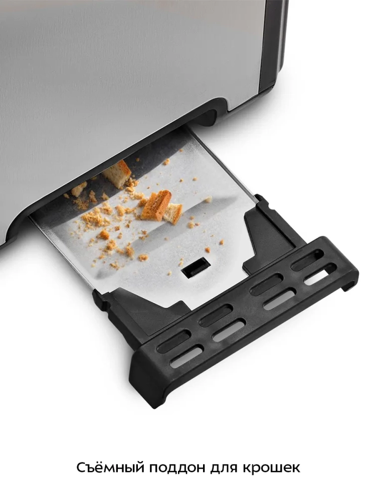 Съемный поддон для крошек позволяет легко и удобно очистить тостер от хлебных крошек.