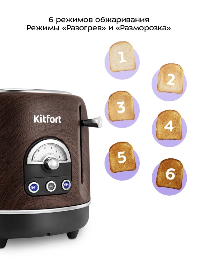 Электрический тостер Kitfort КТ-9910 создан для тех, кто любит ароматный и хрустящий горячий поджаренный хлеб. Особый вкус и цвет корочки тостов получаются такими благодаря карамелизации сахара, содержащегося в хлебе, при инфракрасном нагреве в процессе приготовления.