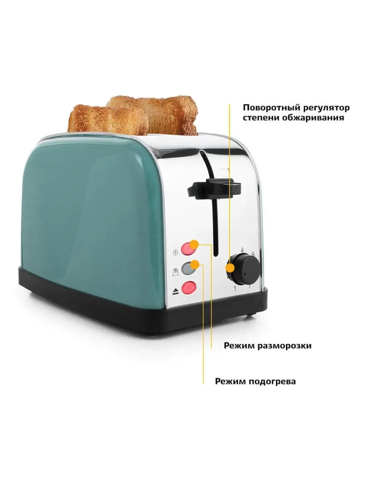 Тостер для хлеба с поддоном КТ-2014 2 слота