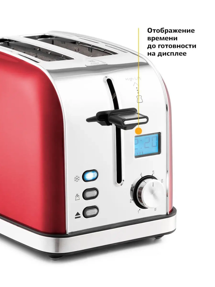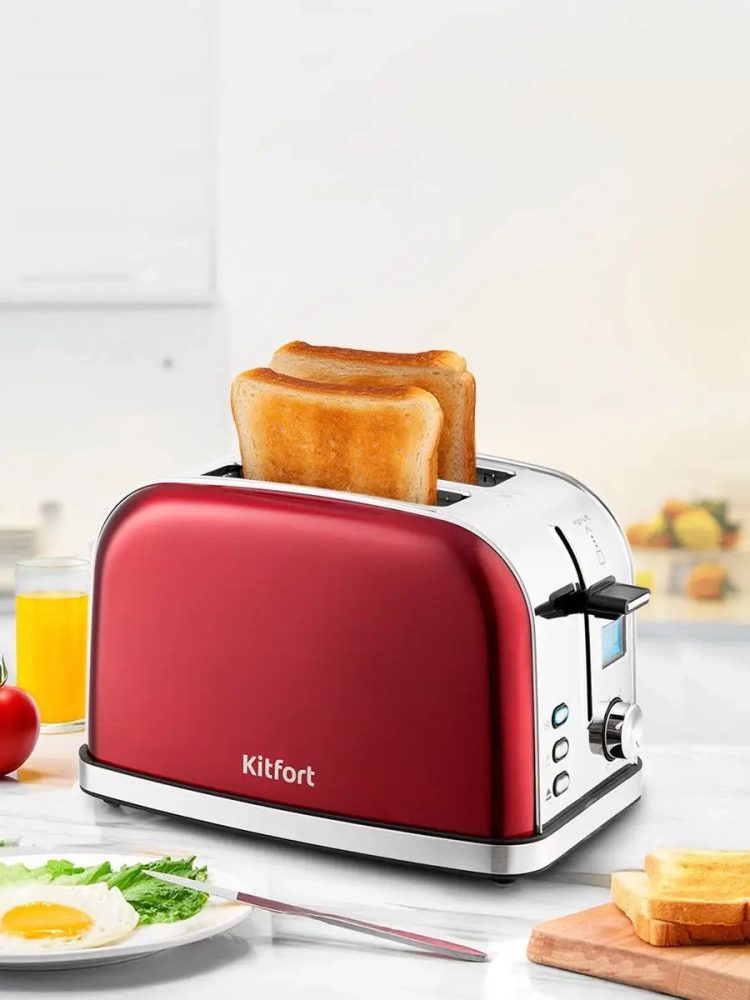 Электрический тостер Kitfort КТ-2036 создан для тех, кто любит полакомиться ароматным и хрустящим горячим поджаренным хлебом. Особый вкус и цвет корочки тостов получаются такими благодаря карамелизации сахара, содержащегося в муке, при инфракрасном нагреве в процессе приготовления. Тостер оснащен поворотным регулятором степени обжаривания, тремя кнопками со световыми индикаторами и жидкокристаллическим дисплеем. Режим разогрева служит для разогрева уже готовых тостов, если они остыли. Режим разморозки позволяет приготовить тосты из замороженного хлеба. Загруженные тосты автоматически центрируются, чтобы их обжарка с двух сторон была равномерной. Оставшееся время показывается на жидкокристаллическом дисплее и позволяет рассчитать приготовление чашки кофе или чая, пока готовится тост. По окончании приготовления тостер автоматически отключается, а тосты поднимаются вверх, чтобы их было удобнее извлечь. Вы можете приготовить 1 или 2 тоста одновременно.