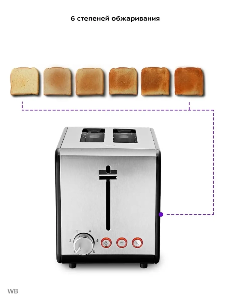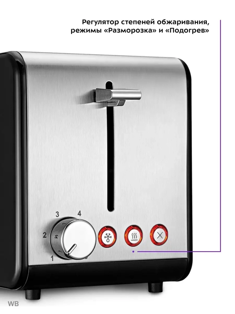 Тостер Kitfort КТ-2058 создан для тех, кто любит полакомиться ароматным и хрустящим поджаренным хлебом. Особый вкус и цвет корочки тостов получаются такими благодаря карамелизации сахара, содержащегося в муке, при инфракрасном нагреве в процессе приготовления. Тостер оснащен регулятором степени поджаривания. Благодаря шести степеням поджаривания вы можете приготовить горячие тосты на любой вкус и из любых видов хлеба. Режимы «Подогрев» и «Разморозка» позволяют разогреть уже готовые тосты, если они остыли, и приготовить тосты даже из замороженного хлеба. Широкие слоты для тостов позволяют поджаривать не только тонкие ломтики хлеба, но и толстые. Загруженные тосты автоматически центрируются, чтобы их поджарка с двух сторон была равномерной независимо от толщины ломтика. По окончании приготовления тостер автоматически отключается, а тосты поднимаются вверх, чтобы их было удобнее извлечь. Механизм экстраподъема позволяет приподнять тосты выше для удобного извлечения тостов небольшого размера. Вы можете приготовить 1 или 2 тоста одновременно. В нижней части корпуса тостера расположен выдвижной поддон для крошек, поэтому чистить тостер просто и удобно.